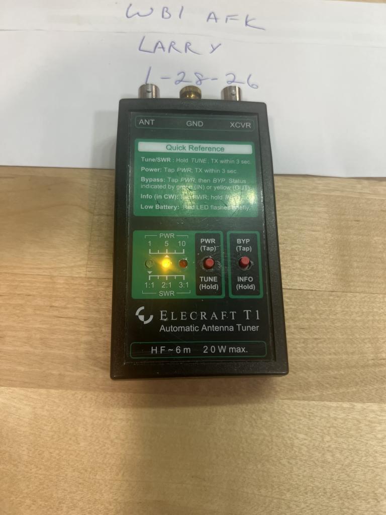 Nice working Elecraft T1 ATU. Rated 20 watts. Used with my IC-705. $250 shipped priority mail. PayPal or Zelle.