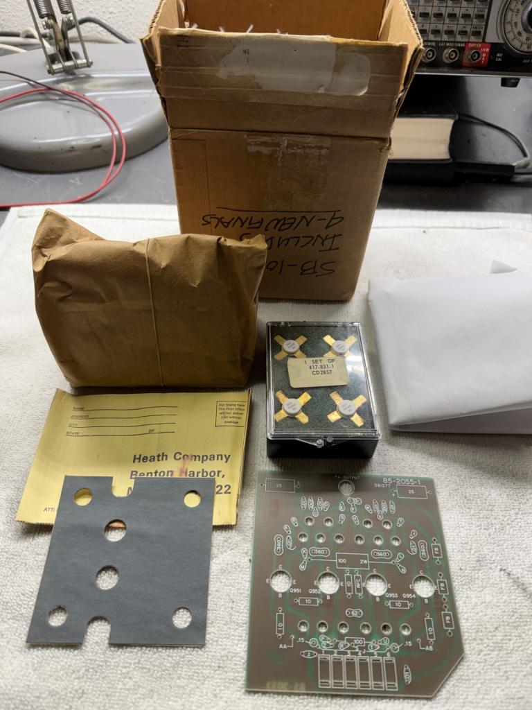 In the box. Looks like it includes everything you need to build a complete PA for your SB-104A, including the four final transistors. 175.00 SHIPPED. Check or money order only. Thanks.