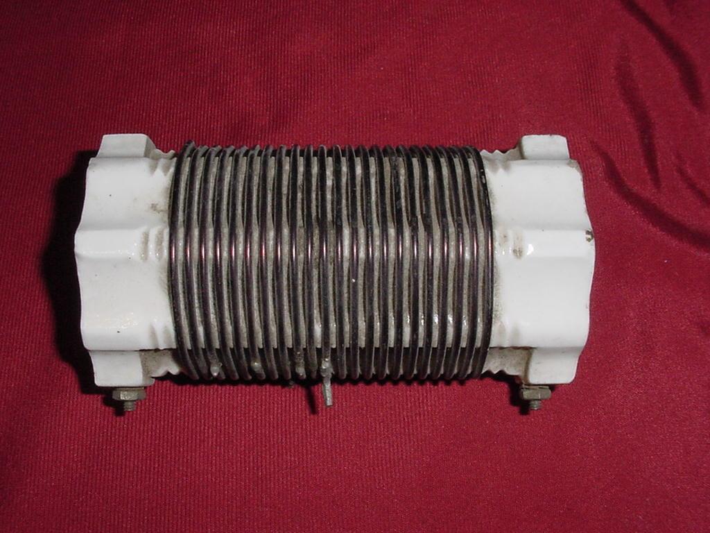 This heavy ceramic coil form is 2. 5 inches in diameter and is 5 inches long it has groves for 25 turns and has 22 turns of solid copper installed on it. The diameter of the windings is 2.25 inches. The form also has four holes for mounting hardware. $39 shipped. I take Paypal, Postal MO and check