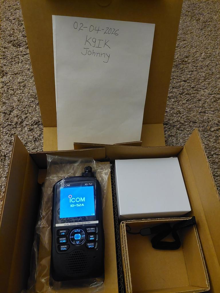 144 / 430 MHz UHF/VHF D-STAR Digital / FM Analog Hand Held Transceiver. In the box, you will have the radio, antenna, battery, belt clip, wrist strap, wall charger, owners manual.