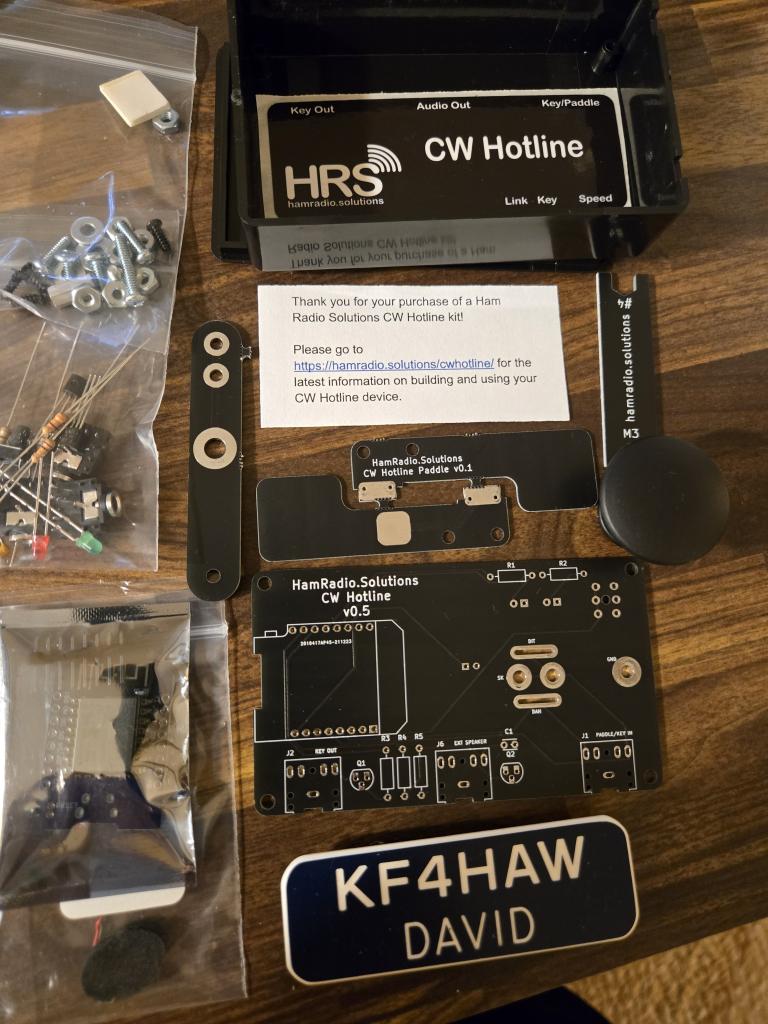 This unused and unopened CW Hotline Ham Eadio Solutions Kit shipped to the lower 48 for 35 check or USPS MO.