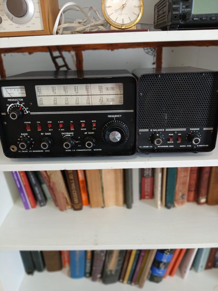 I have the combination Drake 2B receiver and the companion 2BQ Speaker and Q multiplier. Both in good condition electrically and fair to good cosmetically. Receiver has the plug Xtal calibrator. Cannot find manuals for either. Give up on operating out of my apartment. $299
