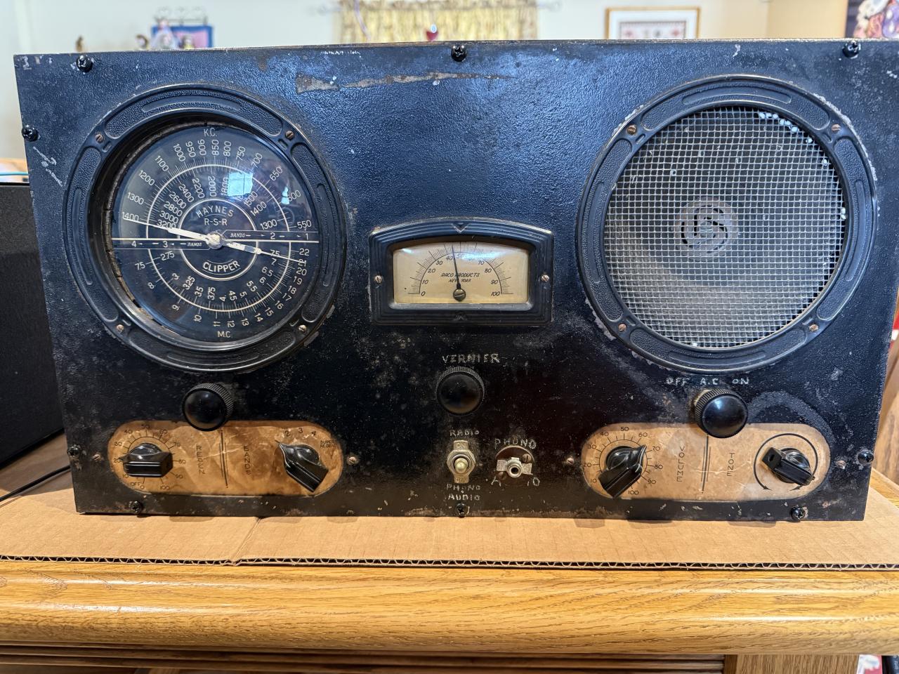 Clipper SRS Haynes Regenerative Radio Receiver, 4 Bands. Covers Broadcast Band through 22 Mhz. Receiver is functional. Electrolytic and Wax/paper capacitors have been replaced.