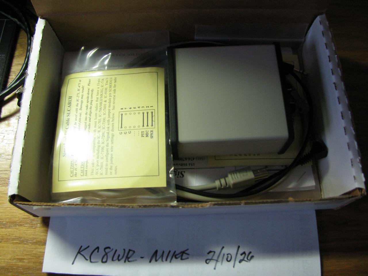 I have a lightly used SignalLink for sale that has become excess to my needs. It is as new and comes with everything as it came from Tigrtronix plus 1 additional cable. I purchased this to be used with an Icom IC-706MMIIG. But since I have sold the 2G and purchased a IC-7300, so I don’t need the signalink It also come with the SignaLink SCLAB13I. With this cable the SignaLink can be used with the IC-78, IC-703, IC-706MKII, IC706MKIIG, IC-718, IC-7000. IC-7100. IC-7200, IC-7300, IC-7410, IC-9100, just configure the internal jumper wire settings. I will accept $110.00 including shipping as payment and will accept your personal check, a postal money order or zelle as payment. No returns are accepted due to the normal reasons. If you are interested I can be reached via my email address (michaelknox37 at yahoo.com) thanks for looking, Mike - KC8WR