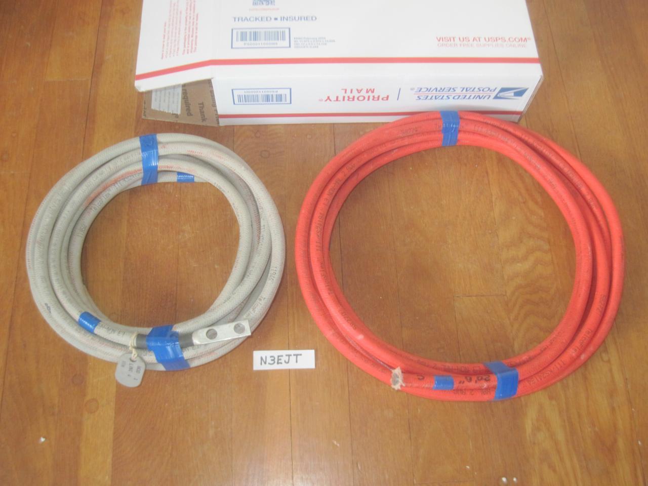 TelcoFlex III KS24194 Red and Gray, 2 AWG Copper power station wire. Used in telephone power Centeral Offices. Number of Strands 7/.0974, OD: 0.482 inches. One (1) Red 20' 8" and One (1) Gray 19' 0" wire. The Gray jacket wire has one lug on one end. Because of rising shipping cost, placing two (2) rolls of wire inside one USPS Flat Rate Box at a price of $115.00 shipped is the most efficient. Any questions call 301-233-0910. Thanks, Dave N3EJT