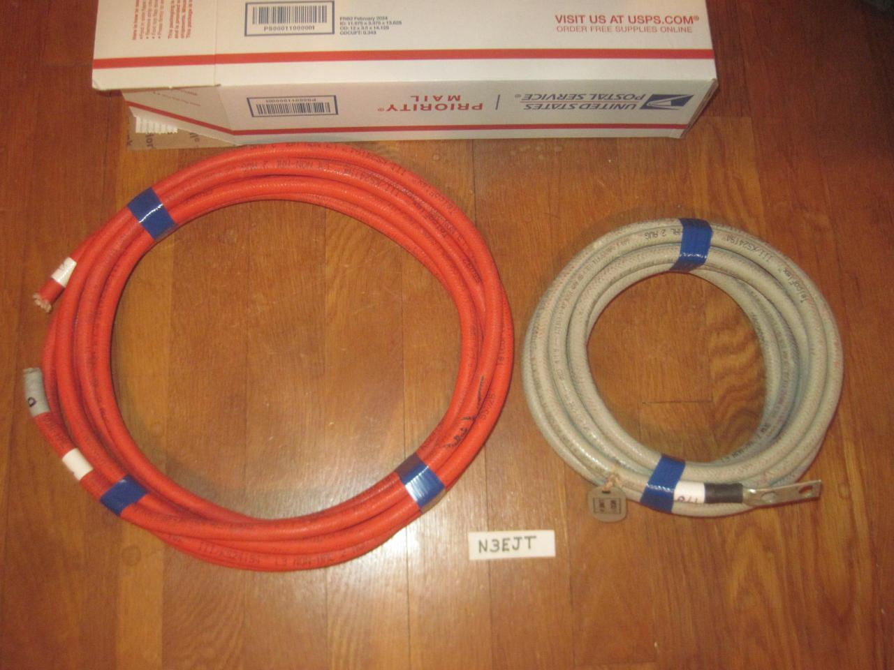 Two (2) Rolls of TelcoFlex III KS24194 Red and Gray 2 AWG Copper power Station wire. Used in telephone power Centeral Offices. Number of Strands 7/.0974, OD: 0.482 inches. One (1) Red 19' 10" and One (1) Gray 17'8" wire. The Gray jacket wire has one end lug. Because of rising shipping cost, placing two (2) rolls of wire inside one USPS Flat Rate Box at a price of $104.00 shipped is the most efficient. Any questions call 301-233-0910. Thanks, Dave N3EJT