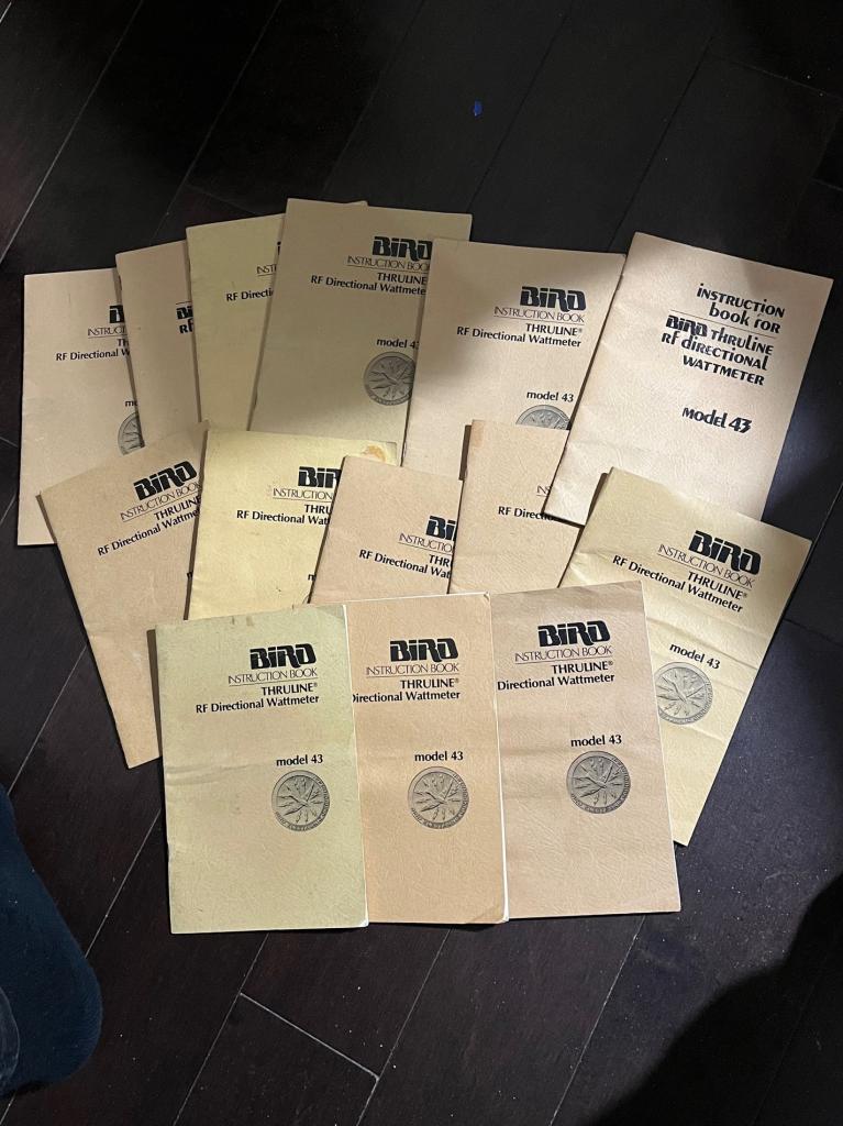 I had 14, I now have 3 original manuals for the BIRD 43 wattmeter. A few are wrinkled or have been folded, but all are complete and readable.