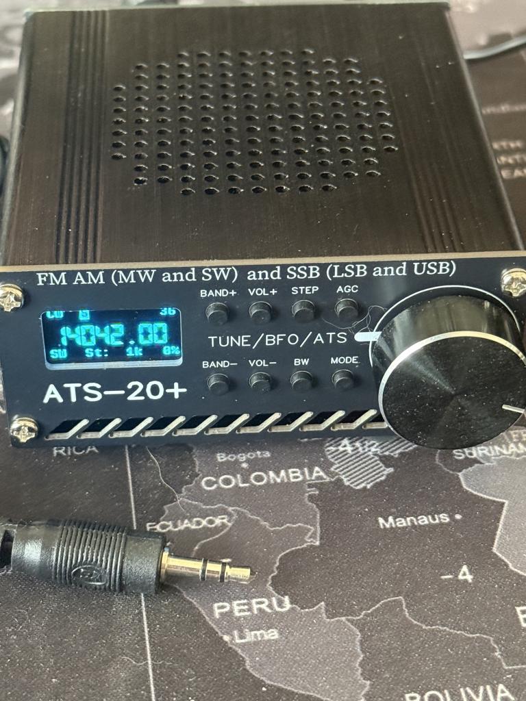 I have a TINY ATS-20+ short wave receiver. The receiver is base on the popular Si4732 chip found in many QRP rigs. It has AM, FM, USB, LSB and CW modes with selectable filtering bandwidth. It is seen here listening to 20m QSO Party activity. It comes with a little 12 inch telescoping antenna that may work on FM broadcasts but is worthless on HF ham bands. But when I hooked it up up my 40m EFHW this box came alive. Selectivity is a problem even when using the digital filters. It has an internal battery and a 3 inch speaker. USB charging and a USB port for FW updates. Check the specs. $25 includes shipping. PayPal please