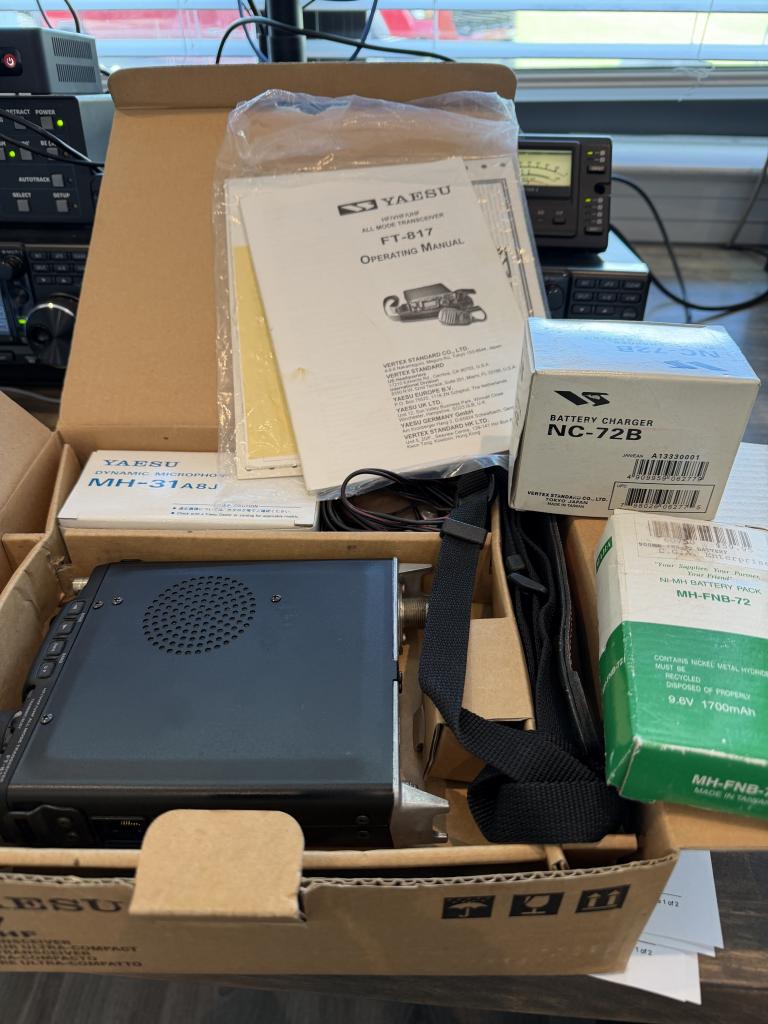 Yaesu FT-817 All-Band Multi-Mode Mobile/Portable QRP Transceivers. QRP Multi-Mode Portable, HF/50/144/430MHz, 5 W, Battery Powered, Hand Microphone. I have had this in storage for about a decade. Radio looks good. I all the accessories, manual and box. Also included is the NC-72B battery charger and a MH-FNB-72 Ni-MH battery pack. Will let it go for $595 plus shipping.