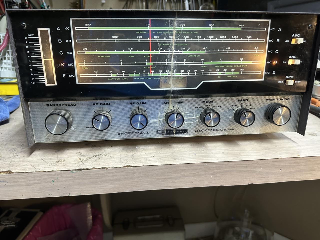 Nice Heathkit GR-54 receiver, electrically works well, cosmetically looks good It have a crack display, but besides that is about 75%,