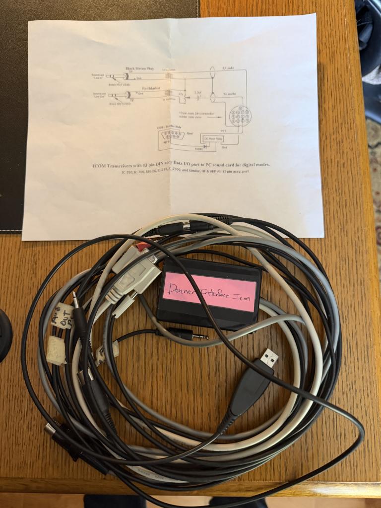 I have a Donner Interface connection package for ICOM radios. I used in on my IC-706MII for various digital modes. Comes with all the cabling to connect a computer to the radio. Instructions included. $50 plus actual shipping.
