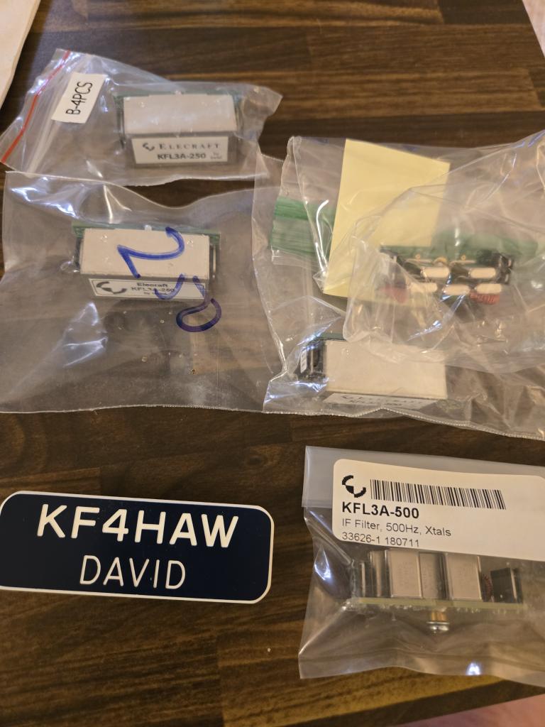 I am selling the following Elecraft filters each for 50 check or USPS MO to the 48 lower states: KFL32-200 1 unit, KFL32-250 2 units, KFl32-400 1 unit, KFL3A-500 1 unit.