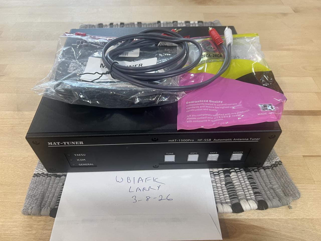 Selling mAT 1500 pro. 1500 watt auto antenna tuner. Very wide range impedance tuner. Comes with never used Kenwood connecting cable but works with any radio. $500 shipped. PayPal or Zelle