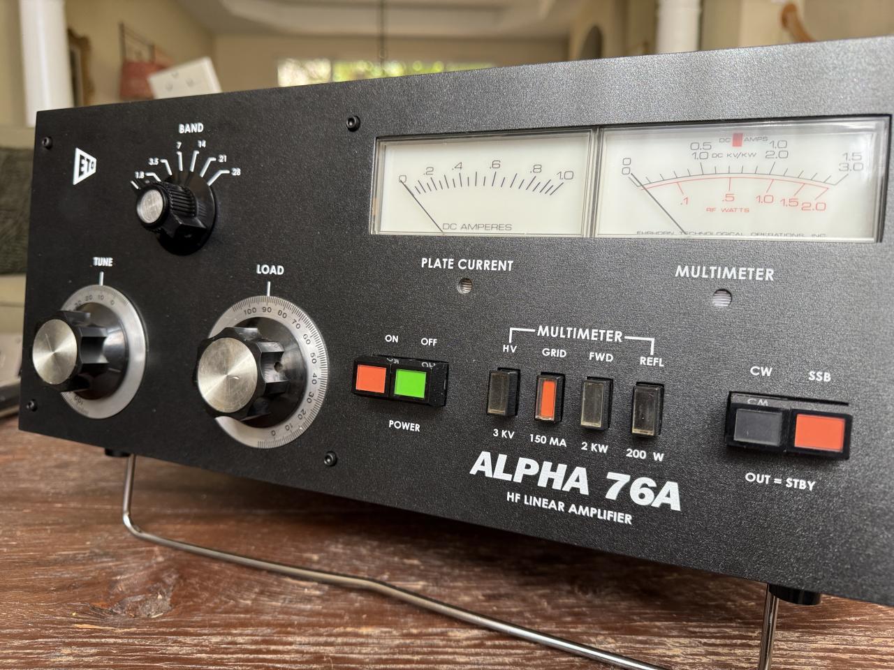 This is a lovingly restored Alpha 76PA three tube amplifier for sale. Brand new blemish free faceplate, titanium screws, lightly used tubes, 120V (can easily be changed over to 240v by switching the wires on a couple of screws), taken apart and fully cleaned and fully tested. You won’t find an Alpha 76PA three tube amplifier in better condition than this one. A masterpiece of restoration to celebrate 50 years of this endurable, indefatigable piece of ham radio history.