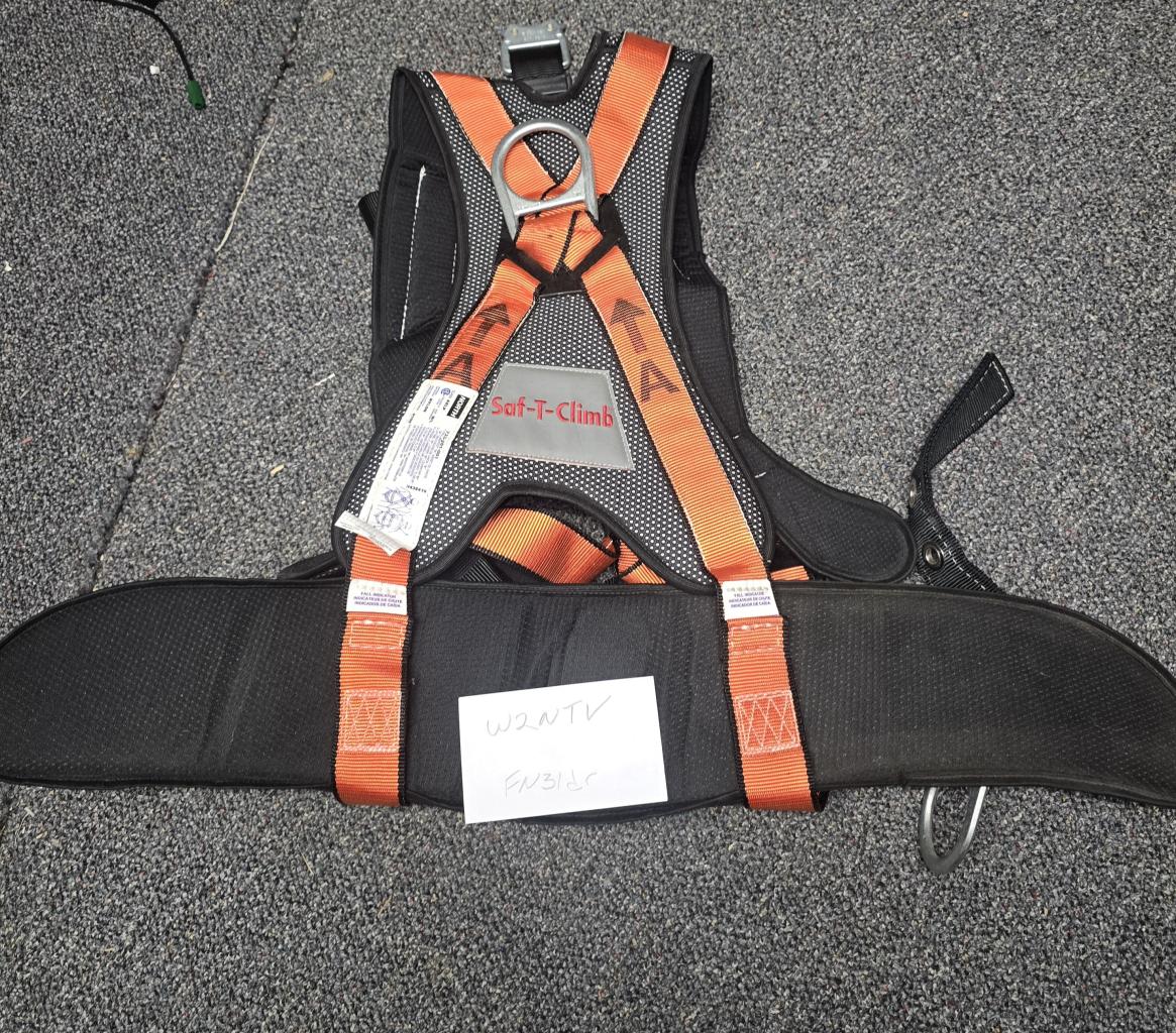 Class A D L P ANSI-Z359 CSA-Z259 full body harness for climbing ladders with fall arrest rail by North Safety Honbeywell, can also fit other fall arrest ladder rail systems.