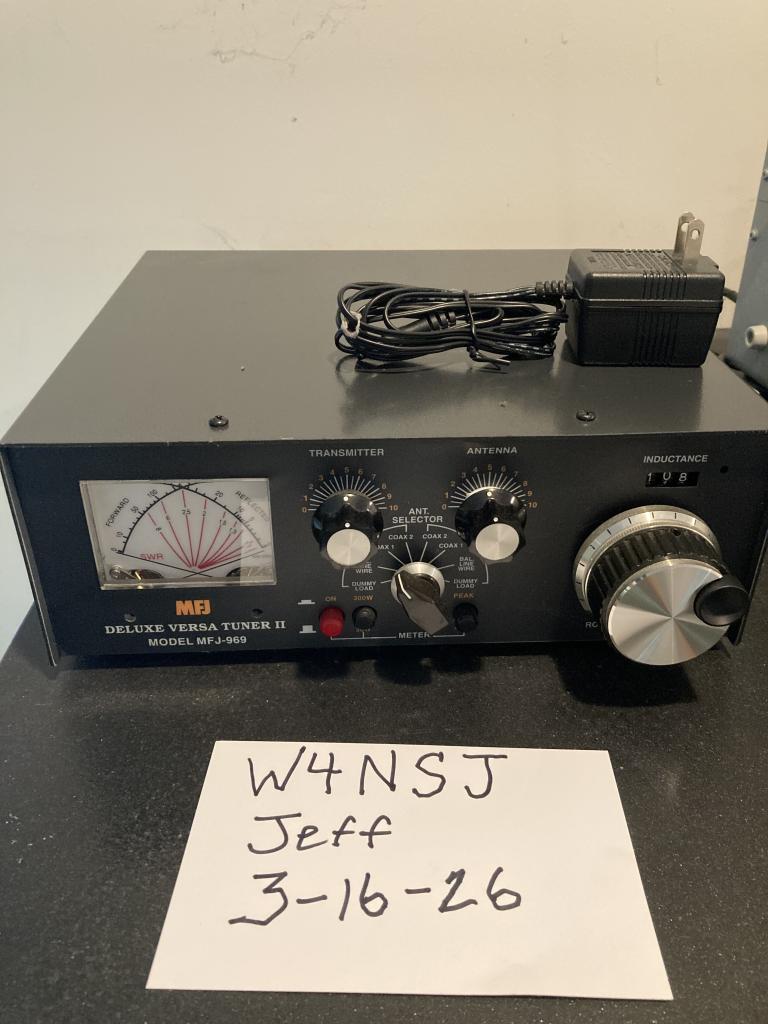DELUXE VERSA TUNER II MODEL MFJ-969. I only used it once to test, then stored it as a backup. Like new, but I unfortunately do not have the box. I will boxed securely. $220 shipped, or I can meet you in Charlotte for $200 . No returns due to parts swapping. Payment by Venmo, Zelle, or PayPal. Take your pick. But if PayPal, you pay the fees. My email is good on QRZ if you want to buy.