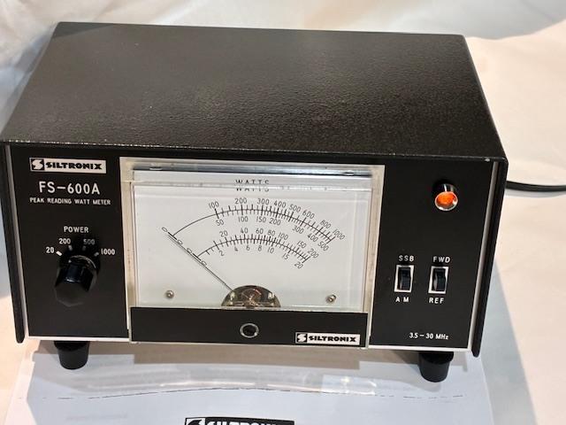 Offered is a Siltronix FS-600A PEAK/AVERAGE reading Power and SWR meter. This meter is virtually identical to the Swan WM-2000A and the WM-3000 as well as the Yaesu YS-2000. This meter has been professionally restored and aligned. It is in very fine condition both physically and electronically showing virtually no signs of use or age. This meter has 4 power ranges (20, 200, 500 and 1000 watt) which can be displayed in either Average or PEAK reading as switched from the front control. This meter has a frequency range of 3.5 to 30 MHZ. Included is a copy of the original operating manual. Please contact me for additional pictures/information. Priced at $99.00 or reasonable offer. Payment by USPS money order or personal check. Sorry, no PayPal.