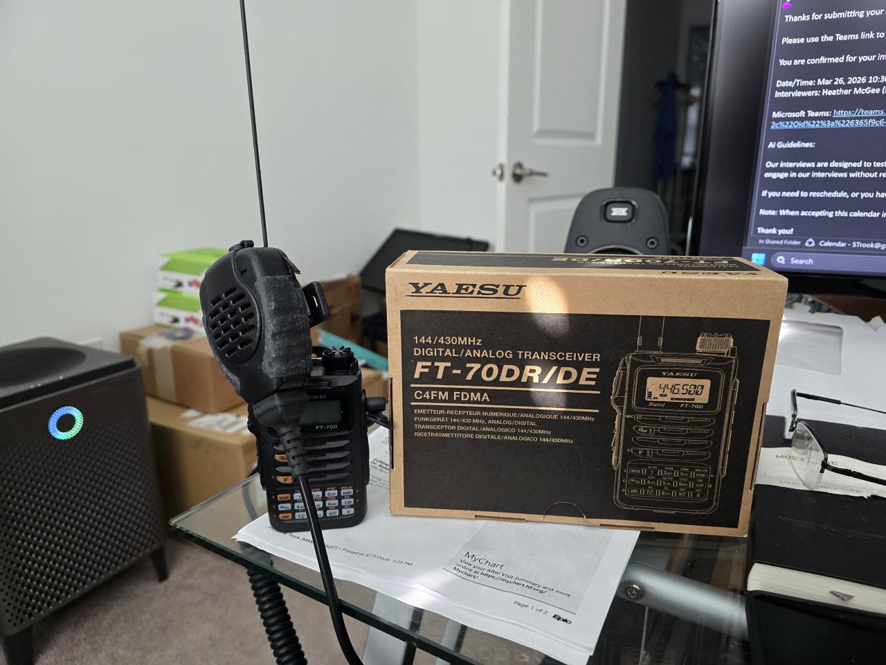 I have a new yaesu FT70DR radio and all that comes with a new radio box and all. 1 extra hi cap battery aftermarket plus the OEM battery. Pryme speaker Mike Trooper II worth $79 alone.