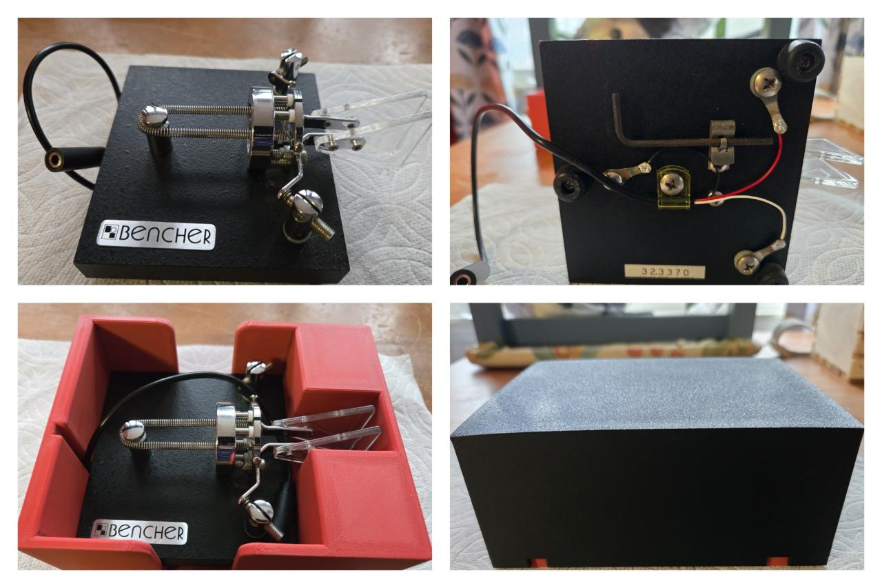 Offering an iconic Bencher dual-lever iambic paddle key with black powder-coated solid steel base. Features adjustable spring tension and contact spacing. Key is in mint condition and works perfectly. It includes the allen wrench used for making adjustments. I was going to use this key for POTA which is why it is wired with a 3.5mm female plug and has a hard-shell carrying case, but it never made it out into the field.