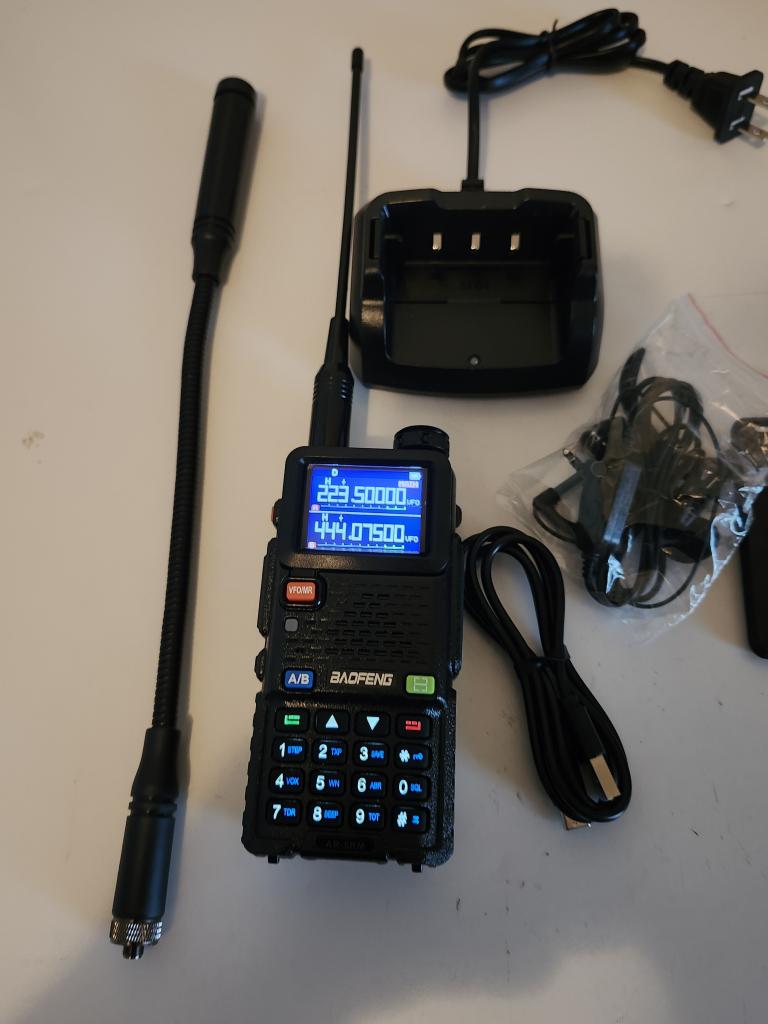 For sale I have a like new Baofeng AR-5RM triband (2m/1.25m/70cm) HT with all stock accessories-drop in charger, earpiece, manual, stock antenna, battery, and USB charging cable . The battery has a USB-C charging jack on it so you don't have to take the drop in charger when you travel, just use your phone charger.