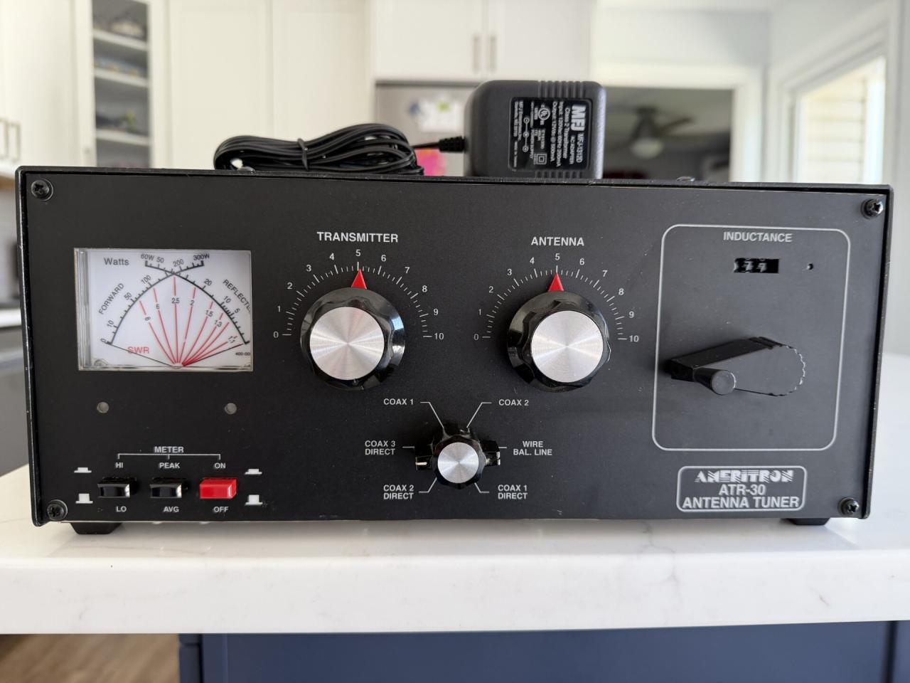 For Sale Ameritron ATR-30 3000 watt Antenna Tuner, includes power supply for lights, original Manual and shipping box.