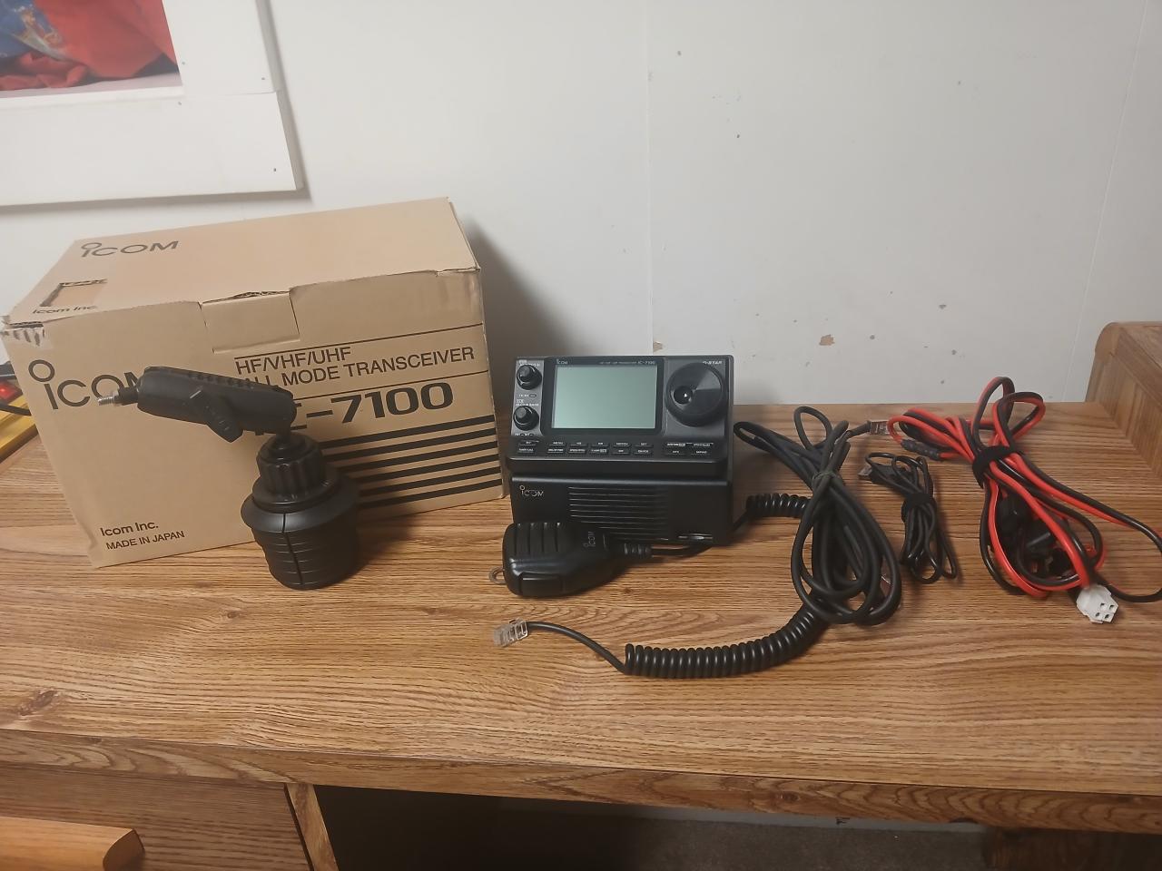 Excellent condition Icom 7100, lightly used and fully operational. Includes original box, microphone, separation control cable, power cord, and USB cable for digital modes/CAT control. Also includes a Lido Radio cupholder mount specifically for the 7100 head.Option 1: Radio + accessories + Lido mount: $850 Shipped CONUSOption 2: Complete Package (Radio, accessories, Lido mount) + Diamond SD-330 motorized antenna with both whips + Tunematic EZ Tune (Model EZT-I) with all control cables: $1150 Shipped CONUSThis is a fantastic turnkey mobile or portable station.Payment via PayPal F&F or Venmo. PM to inquire.Items ship from Idaho Falls area.