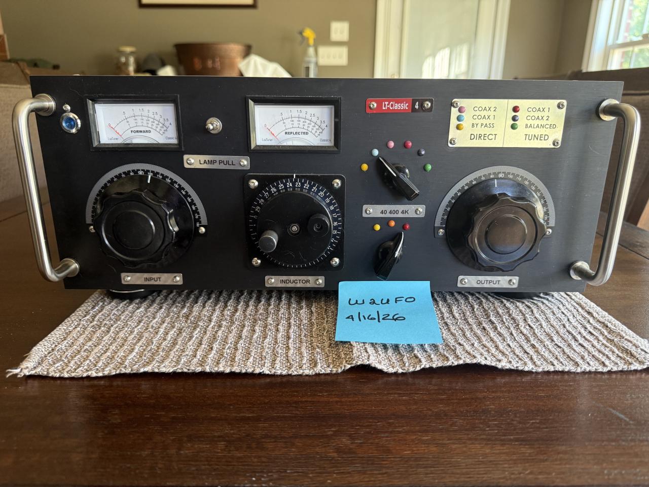 LAZTuner Classic LT-4 High Performance 4000W Antenna Tuners, made in France, are premium, high-quality devices that stand out not only for their excellent performance but also for their elegant design. The LT-4 series is produced in small batches with meticulous attention to detail. An impressive front panel, made of anodized aluminum, houses all the controls needed for a simple and convenient tuning process. Large, precise tuning knobs with scales, and two analog meters