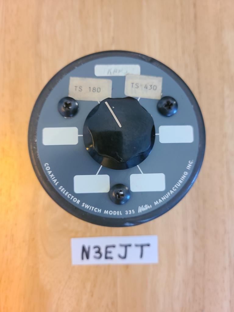 Waters model 335 six (6) position rotary RF Switch. All seven connections on rear are SO-239 type. Small dent in case has no effect on operations. I just tested with a radio-antenna w/switch in-line. I have rear & other pics, just ask. $60 picked up at qth or $75 shipped to lower 48. Questions call 301-233-0910. Thanks, Dave