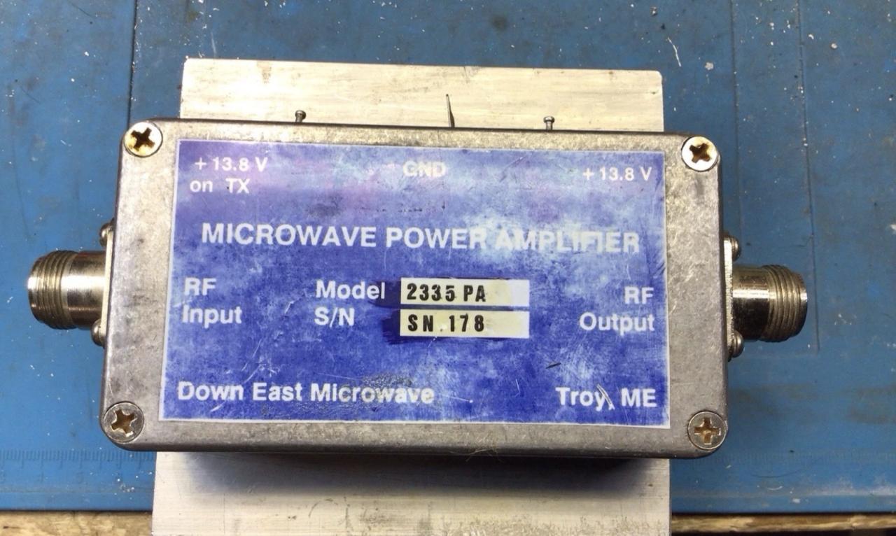 This is a Down East Microwave 23cm amplifier, 7W in, 35W out, 13.8V.