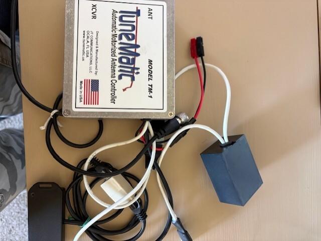 Mint condition TuneMatic TM-1 motorized antenna controller. 100% operational and actually never installed or used. Picture shows it upside-down but includes the TuneMatic keyboard control unit for dash or where you want to control antenna. Al cables currently set up for Icom transceivers but cables available for other radios as well. $110 shipped to continental US addresses only. Call with questions; Paul AC5S 303-362-3933