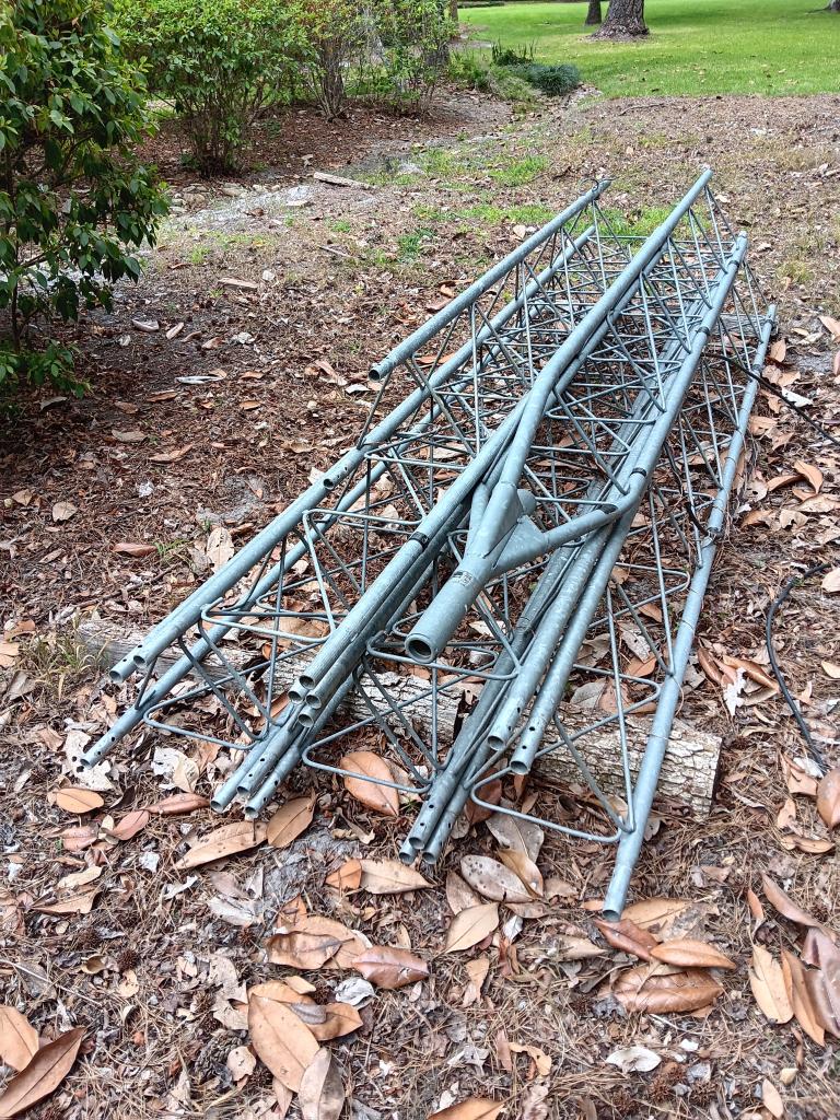 In good condition except one joint hole torn. Top section takes 1.25" or 1.75" mast. Includes a cut 6 foot section for burial. Total height is then 63 feet with 3 feet in concrete.