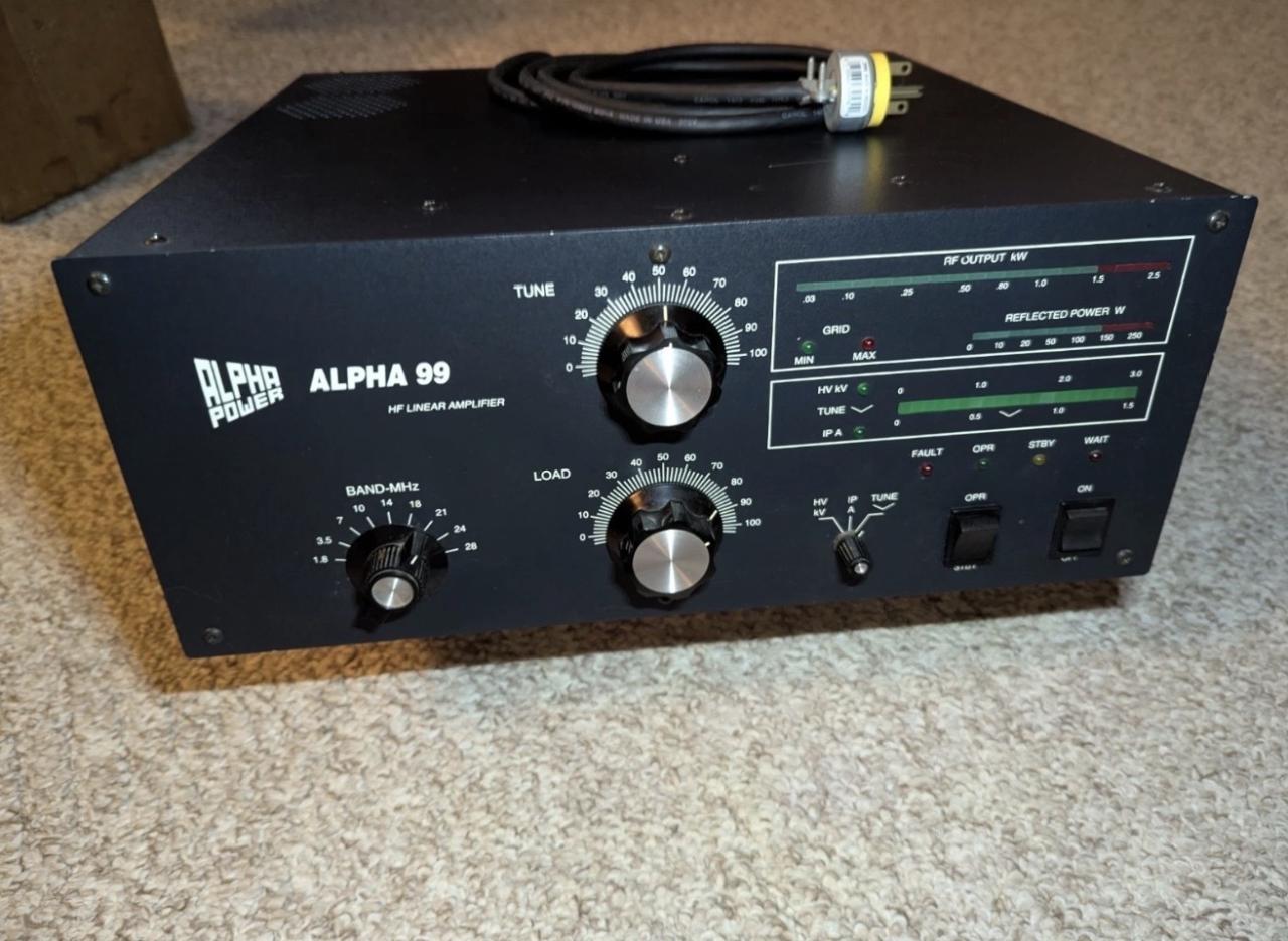 This unit is nearly new and comes with original packing materials. It has been in dry storage for 20 years after its original owner became an SK. It has barely been used. Would prefer local pickup, but will ship at buyer’s expense via Pirateship. You won’t find an Alpha 99 in better condition than this one. Tested for full power out.